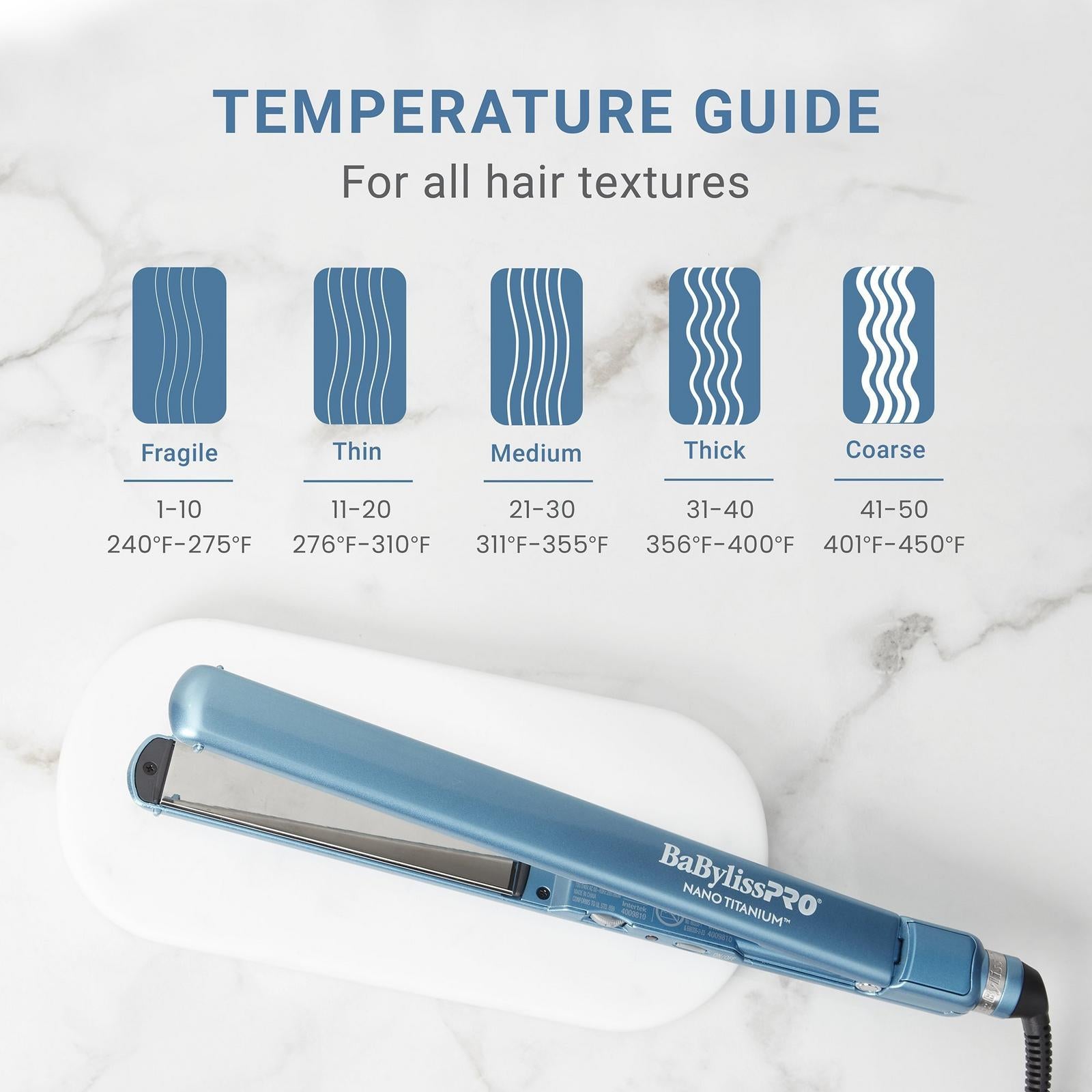 BaBylissPRO Nano Titanium 1'' Ultra-Thin Straightening Iron features smooth titanium plates and 5'' extended plates.